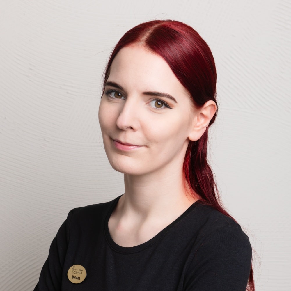 Melinda on tehnyt hoitoja vuodesta 2023 ja viihtyy työssään, joka tarjoaa monipuolisuutta ja mahdollisuuden oppia jatkuvasti uutta. Hän tekee mielellään kaikkea sokeroinneista jalkahoitoihin ja hierontoihin. Melindalle tärkeintä on, että asiakas tuntee itsensä hoitohetkessä tärkeäksi ja saa juuri sen lopputuloksen, jota toivoo. Vapaa-ajalla hän uppoutuu elokuviin ja kirjoihin.
